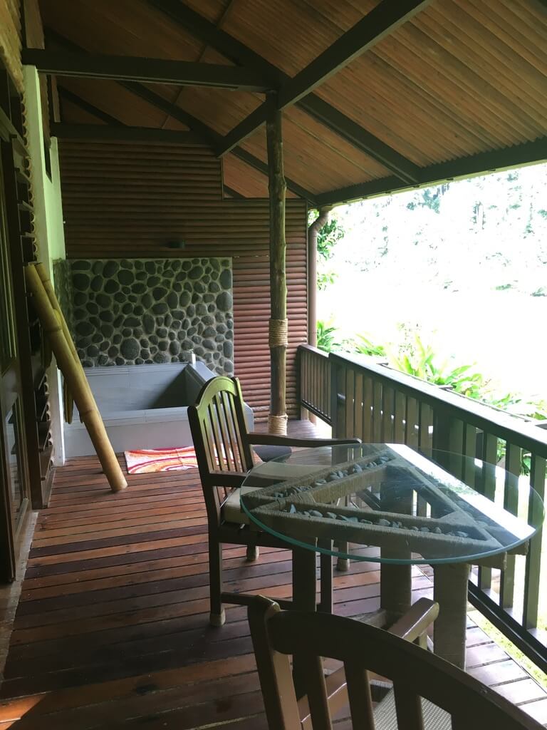 The rooms were huge, with a really modern bathroom, high ceilings and ours had a jacuzzi on our veranda. Whether it was sunny or in the middle of a rainstorm it was the perfect covered place to relax.