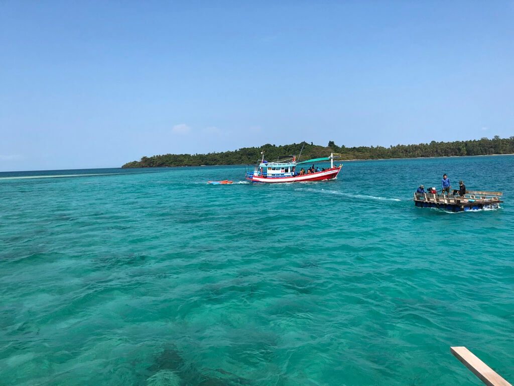 Uninhabited at the time of our visit this island has the beginnings of an amazing hotel resort. Unfinished, the resort now has kind of jungle feeling to it. We walked around the shell of the building, saw where each villa would have had its own plunge pool! It could have been sheer luxury. Now it looks more like a scene from tomb raider, or Ta Prohm in Siem Reap!