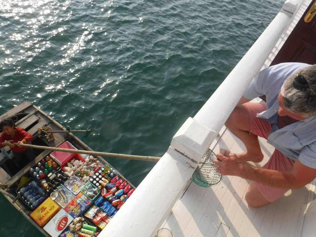 One of my favourite experiences on this trip was one which wasn’t on the itinerary. Whilst hanging out on our balcony a local seller caught our attention. They row for hours in boats and have many things to sell to you. We ended up buying a couple of beers from a lovely lady from our balcony. And the way she got them to us? With a handy net on a very long pole; genius! The money went back to her in the same way. Chilling on our amazing balcony in a stunning setting having a cheeky beer, it doesn’t get much better than that!