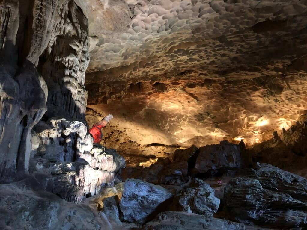 The first stop after lunch is to a cave called Hang Sung Sot, locally known as ‘Surprise’ Cave. I’ll leave it up to you to guess why! A large cave system with purpose built walkways, this cave also has amazing viewing points if you are happy to climb. Look across the bay & spot which luxurious boat you are staying on. You cant miss it!