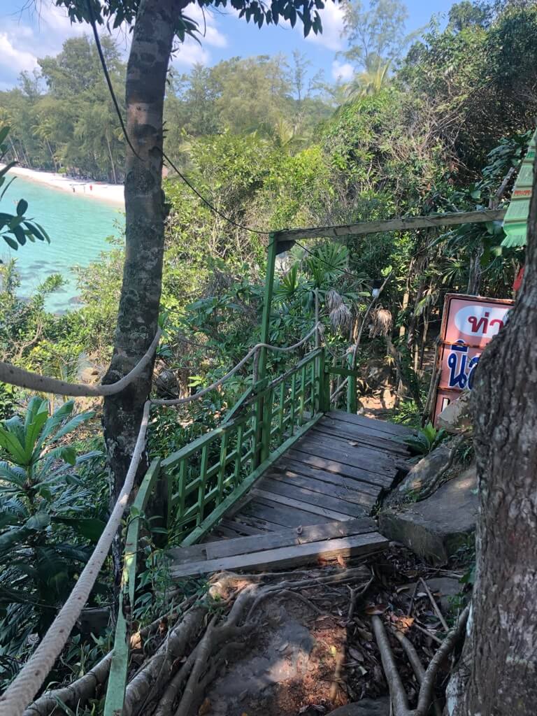 Arriving here by boat you will instantly see the tell-tale mountainous jungle terrain but with a really large golden Buddha statue in front of it. Visiting this you are able to climb the steps to the top of the temple giving you a lovely view over the bay, fishing village and neighbouring beach.